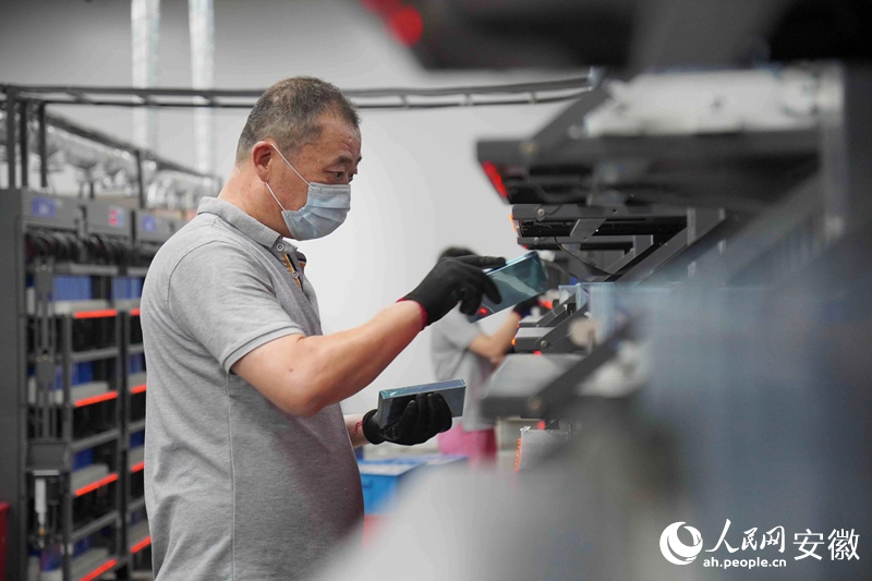 安徽巡鷹集團生產車間,工人正在對電池進行分容檢測。人民網 陳若天攝