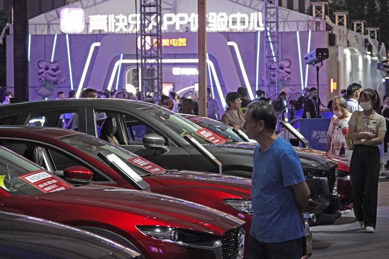 在“618杭州拱墅消費嘉年華”活動上,消費者正在選購汽車。李忠攝