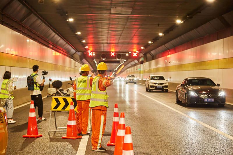 演練場景二模擬了隧道照明配電箱因線路老化冒煙,引發明火,展示了隧道內消防感知設備第一時間自動報警,中控人員按應急預案要求,切換指示燈,開啟應急廣播,并報余杭區行政執法指揮中心,配合交警對隧道進行封閉,由消防進行專業滅火處置,火勢熄滅后養護單位迅速對損壞電箱、線路進行更換修復,并恢復交通。