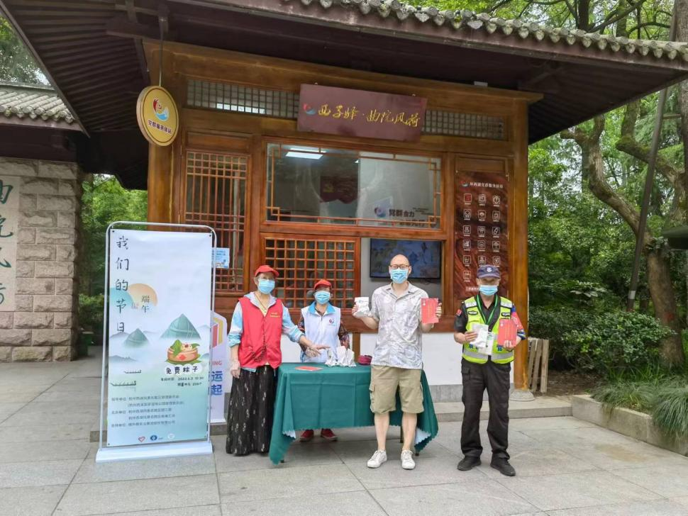 “西子驛·曲院風荷”黨群服務驛站志愿者向游客發放免費粽子。西湖風景名勝區管委會供圖