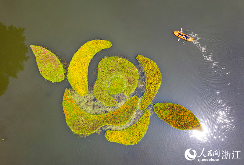 游客乘坐皮劃艇在杭州西溪濕地游玩。人民網 章勇濤攝