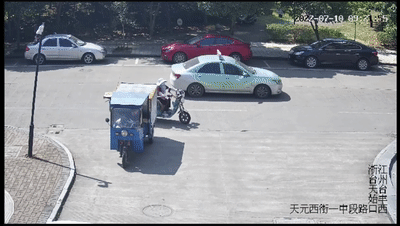監控視頻中,阿婆開車離開了王女士家。臺州公安供圖