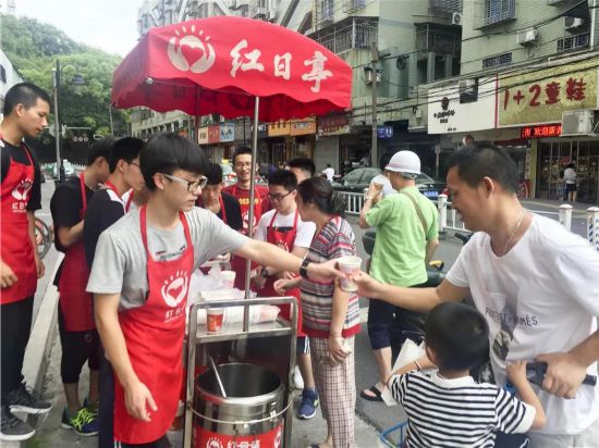 越來越多的學生、年輕人加入紅日亭的隊伍,每逢周末,寒暑假,他們不約而同相聚紅日亭,幫忙做義工,傳揚紅日亭的慈善故事。越來越多的企事業單位加入了愛心聯盟,看望老人、關愛孩子、關心退伍軍人……汲取紅日亭無私奉獻的精神,讓“溫暖之州”的金名片熠熠生輝。