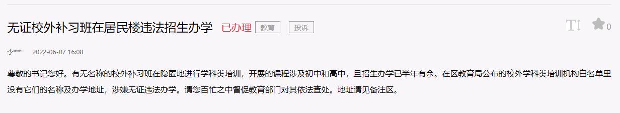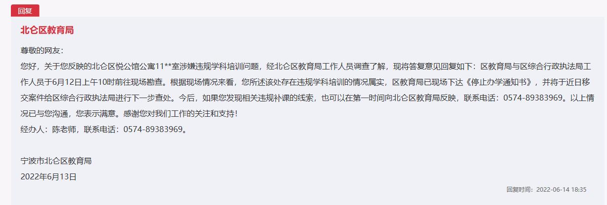 辦實事|網民舉報培訓機構無證辦學 寧波北侖:已查處,停止辦學