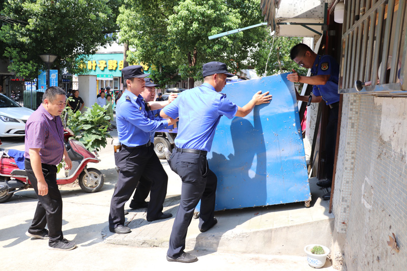行動中,執法人員各司其職、全面排查,對梅月路主次干道、背街小巷的占路經營、跨門經營、亂擺亂放、亂貼亂畫等各類市容亂象進行及時處置。同時,針對轄區內車輛違停、飛線充電等短板問題,強化整改處置力度,讓各類亂象無處遁形。