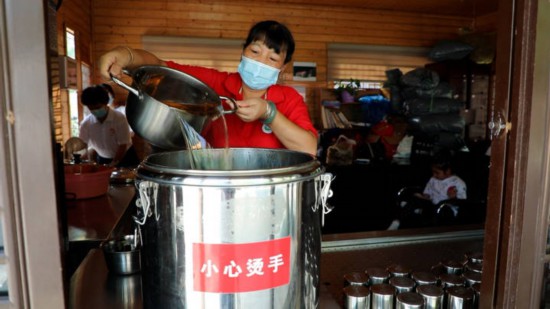 在文成縣大峃鎮珊門社區的愛心茯茶點,文成“鶴城大姐”志愿服務隊精心采購了十多味中草藥配成茯茶,凌晨4點就忙活開,每天燒制4大桶800斤茯茶。據悉,文成縣大峃鎮以各村婦女為主體,在文成縣城區范圍內的18個村(社區)分別成立“鶴城大姐”志愿服務隊,并以組命名參與各種志愿活動。