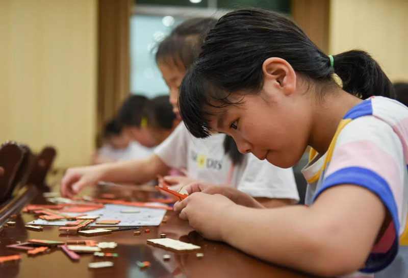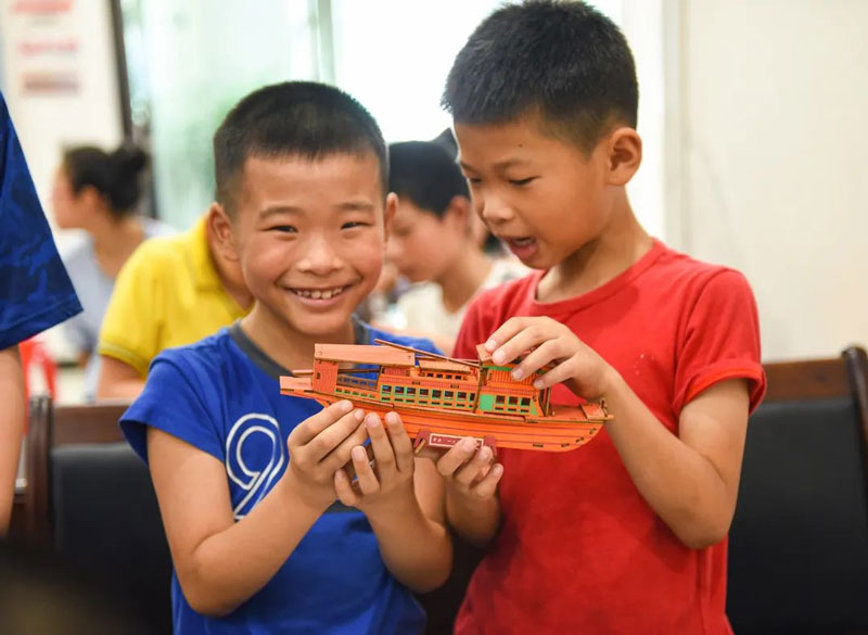 孩子們動手制作紅船模型。文成縣委宣傳部供圖