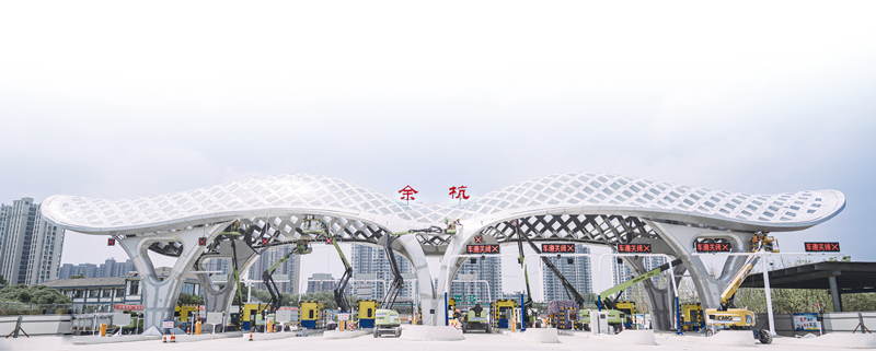 全新的收費大棚采用鋼結構鏤空形式,造型如大鵬展翅。余杭區交通運輸局供圖