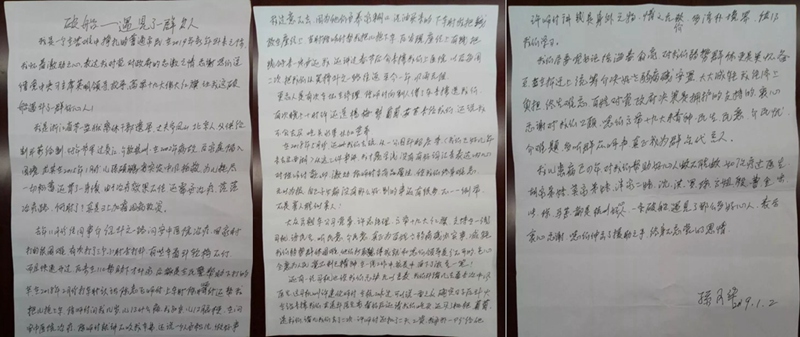 孫奶奶手寫的3頁感謝信。受訪者供圖