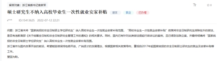 辦實事|非全日制應屆畢業碩士研究生無法享受安家補貼 浙江寧波:安排