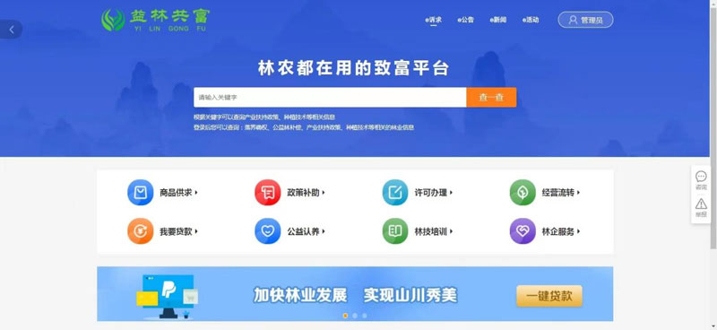 “益林共富”多跨場景應用橫向聯動17個部門,集成98項業務數據,縱向貫通7個層級,以需求為導向、以用戶為目標、依職能定模塊、按業務建功能,依據“分類統籌、清單管理、應用推廣、開放共享、風險防范”的工作機制,打造全新的線上便民服務中心,增加商品供求、政策補助、許可辦理、經營流轉等模塊,進一步提升林農林企獲得感,形成獨具龍泉特色的數字服務平臺。