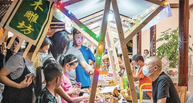 非遺集市上,黃楊木雕攤位頗受歡迎。梁琳攝