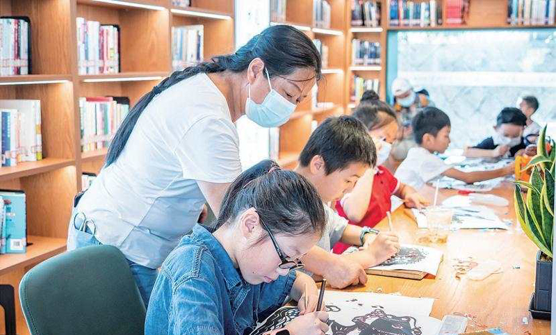 “刻得再細致一些,盡量不要讓線條斷開,否則作品就會有瑕疵了?!苯?,在望港書苑進行的非遺小課堂——樂清細紋刻紙(樂清剪紙),小朋友們拿上刻刀,體驗了一把樂清細紋刻紙的制作方法。
