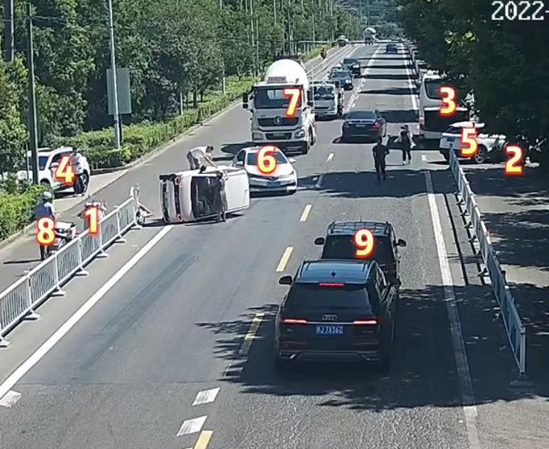 8月22日中午,天氣炎熱,司機袁某駕駛一輛微型轎車途經臺州市天臺縣赤城街道惠民路黃姆岙路口附近時,因困意襲來,一個分神導致車輛側翻,車門變形無法打開。危急時刻,一場“愛心接力”開始了。
