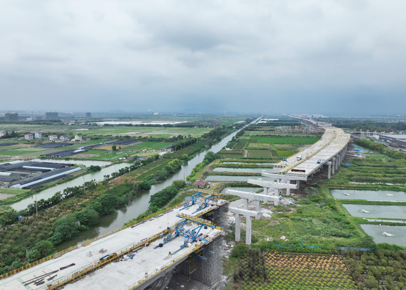 杭紹甬高速杭紹段項目杭州蕭山四號高架橋完成首個邊跨合龍