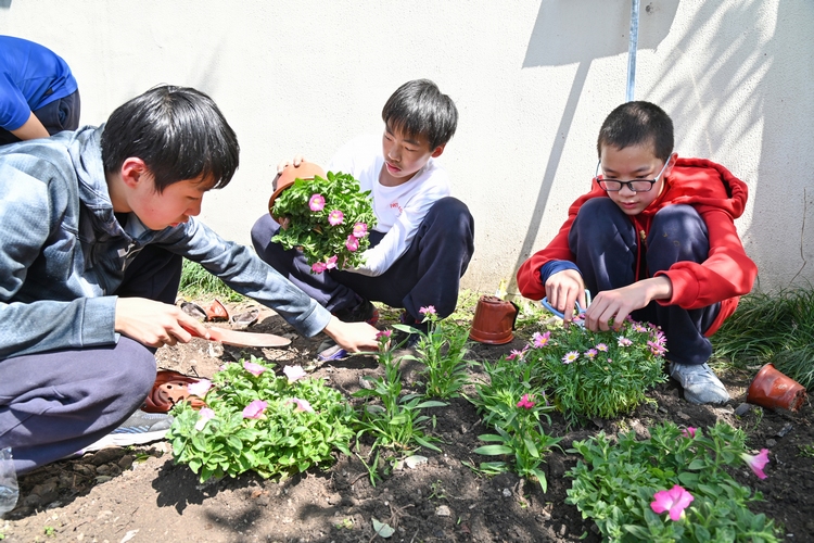 杭州安吉路實驗學校學生學習種植。徐暉攝
