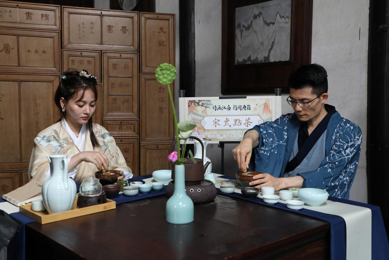 “詩畫江南 行閱典籍”曬書活動之“宋式點茶”。費騰輝攝