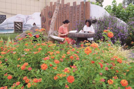 9月2日,在嘉興桐鄉市崇福鎮灣里村,村民在優美庭院里的鮮花簇擁下閱讀。當地以書香為特色打造美麗鄉村,讓鄉村發展浸潤人文內涵。(成杰)