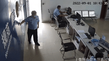 從值班室門口走到座位前,短短三米的距離,浙江臨海上盤派出所輔警項鴻偉顫顫巍巍地走了許久,花了18秒才坐下。