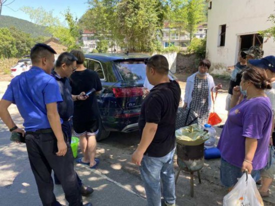 執法人員對擺設路邊攤的村民進行勸導。仙居縣委宣傳部供圖