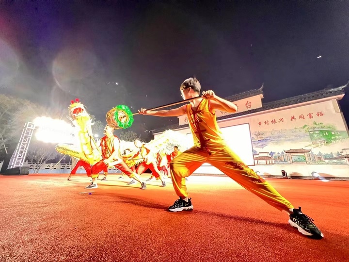移沿山村傳統喜慶的《稻穗龍》拉開了活動的序幕,小伙子們矯健的身影、精湛的舞龍技藝贏得了觀眾的陣陣掌聲。歌曲《共同富??凑憬?、詩朗誦《月光下的中國》、舞蹈《紅旗頌》等節目接連上演。八里店鎮東升社區舞蹈隊表演的《歡樂送給你》、沈根法“草根”藝術團表演的說唱《浙風十里 文明有我》等貼近群眾生活的節目更是將活動推向了高潮。