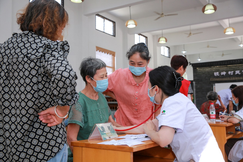 鏡嶺老街開街儀式結束后,醫療專家隊以及紹興市紅十字會的專家們在鏡嶺村文化禮堂開展了義診活動,并開設急救知識講座。