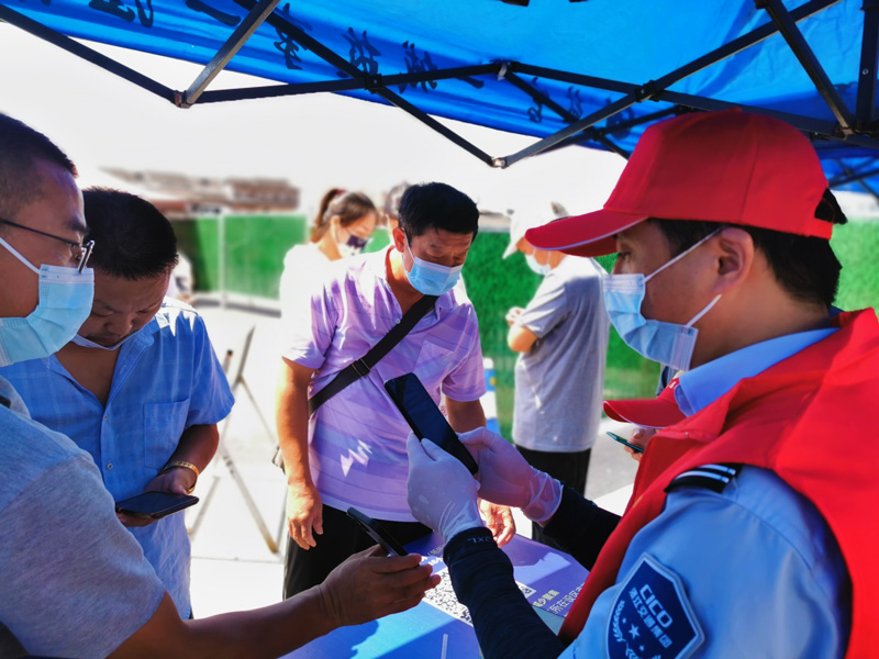 按照規定程序,綠碼、體溫正常和有核酸陰性證明者,志愿者們將會為游客發放佩戴健康手環,憑手環進入景區購票和各景點。其中省外來返人員需提供落地核酸采樣證明。為方便核酸超過時間及省外游客,景區停車場外面還設了核酸檢測點,方便過往游客。