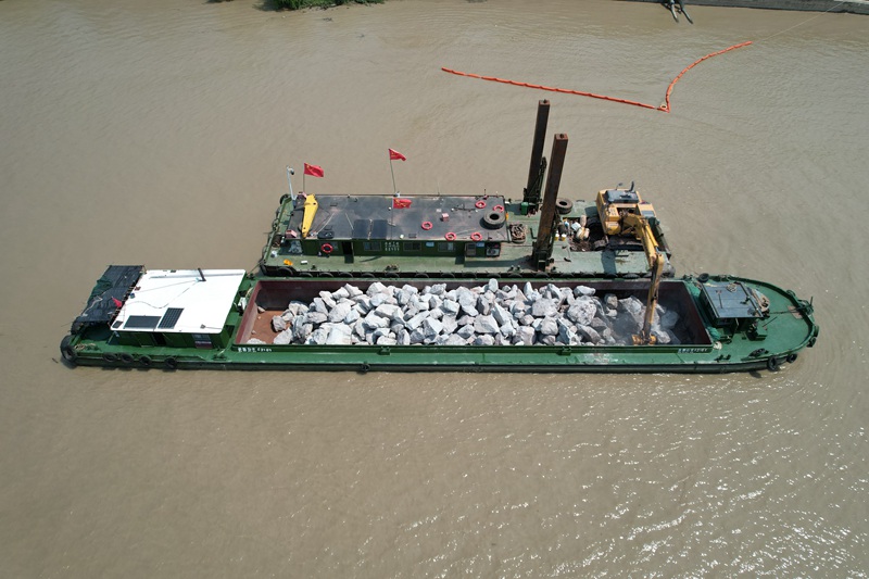 近日,人民網浙江頻道跟隨浙江省水利廳組織的“‘浙里平安’行 丈量水利民生刻度”媒體聯合采訪團來到了位于杭州市蕭山區的西江塘聞堰段。據了解,為有效解決塘腳沖刷等問題,目前,該段正處于拋石作業的關鍵階段。