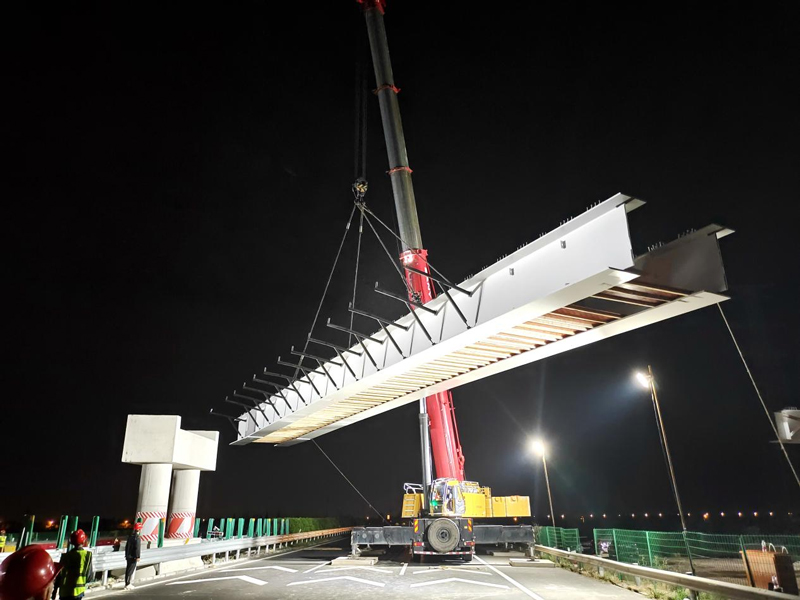 為確保盡快完成架設任務,杭甬復線寧波一期項目公司牽頭與寧波市公安局高速公路警察支隊、寧波交通運輸綜合行政執法隊、寧波大通開發有限公司等單位多次召開專題會議,提前謀劃、嚴密部署、優化組織,最終確定采用以夜間雙幅封道的形式進行架設安裝。