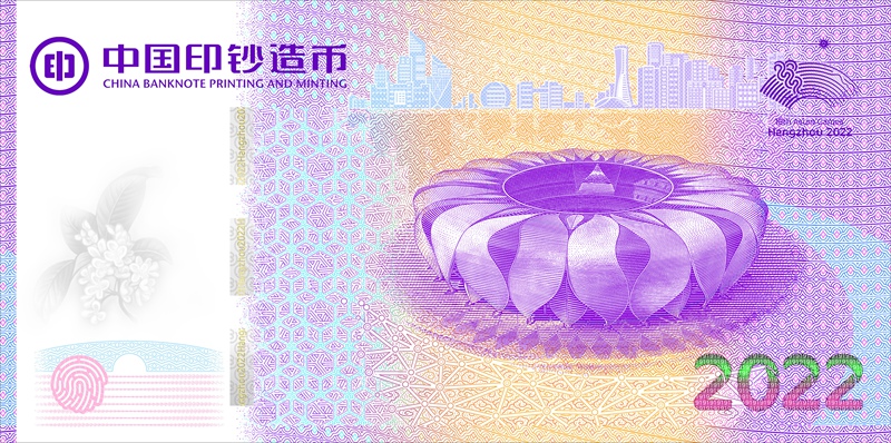 中國印鈔造幣集團有限公司副總經理楊問田介紹,杭州亞運會紀念券正面采用杭州亞運會主場館、杭州城市天際線、桂花、西湖斷橋等元素,構成了“絢麗亞運”的美麗景象,體現了杭州文化開放、兼容的特色;背面采用杭州亞運會吉祥物、良渚文化、荷花等元素,展現出“中國特色、浙江風采、杭州韻味、精彩紛呈”的美麗畫卷。