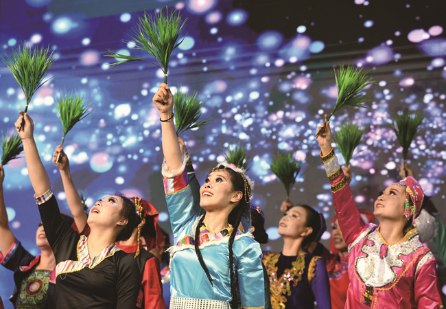 9月26日晚,“‘喜迎二十大·奮進新征程’2022年海鹽縣民族歌舞大賽”舉行?,F場,在嘉興海鹽工作生活的苗族、壯族、瑤族、回族、布依族和土家族等多個民族的同胞,帶著家鄉的歌舞歡聚一堂。(馮玉坤)