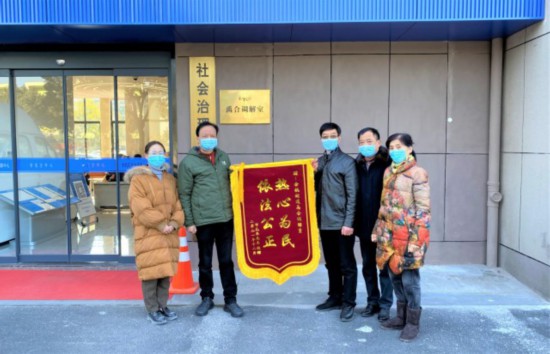 市民給禹合調解工作室贈送錦旗。余杭街道供圖