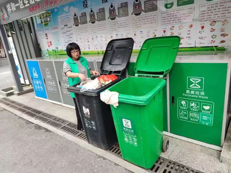 “桶前”指導員作為垃圾分類的一線工作人員,早晚像哨兵一樣站好自己的崗位,值守分類亭,監督好每一個垃圾分類桶,管住垃圾分類“最后一米”。清運時,他們則按照“以桶換桶”模式,減少垃圾混運傾倒,在每天換回垃圾桶之前將垃圾桶進行清洗。每一位“桶前”指導員都是小區、社區、街道的“美容師”,每天面對易腐垃圾,不怕臟、不怕苦,積極推動垃圾分類“最后一公里”的有效實施。(沈婭玲、聞菊萍)
