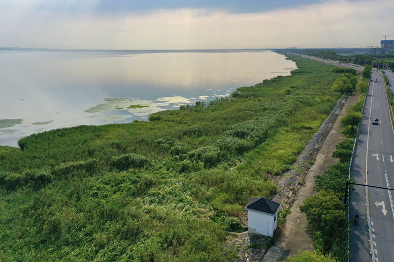 為改善南太湖沿線的水生態環境,南太湖新區還實施了太湖沿線的生態修復工程?!懊磕耆脑?,我們都會對岸邊種植的蘆葦進行收割和補植。今年在補植的時候,我們對整個修復帶進行了測繪,顯示目前蘆葦蕩的總面積已達38.8萬平方米,基本覆蓋了整個太湖南岸?!笔逢烧f。