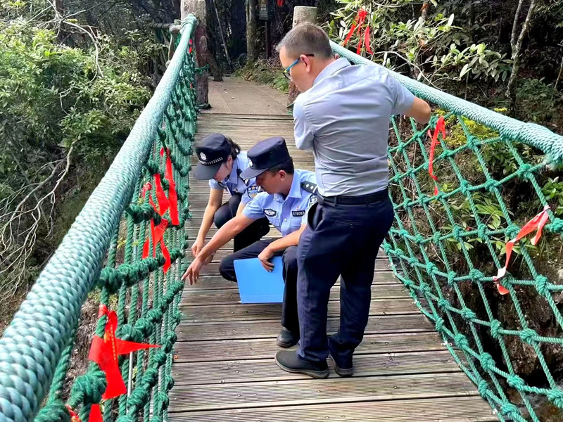 百山祖派出所民警對景區設施進行安全檢查。慶元公安供圖