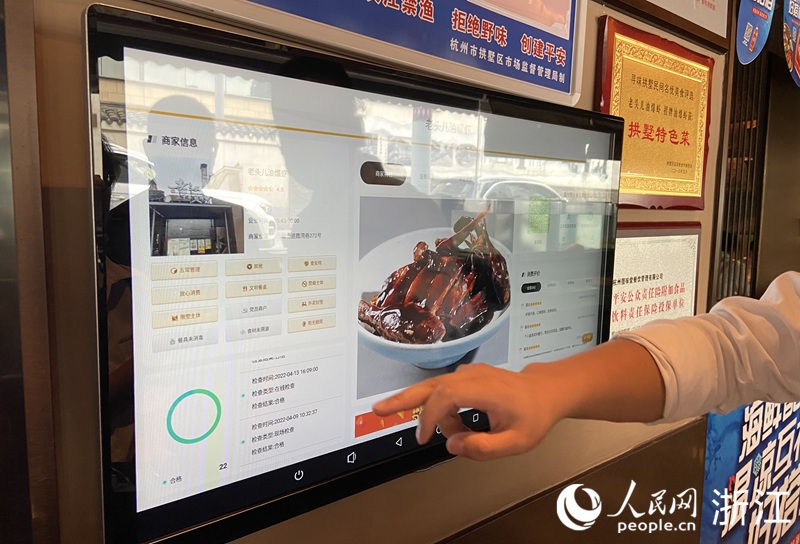 商戶在進門顯著位置都設有食品安全信息觸摸式看板。人民網 方彭依夢攝