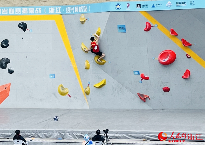 攀巖比賽不僅考驗運動員的體力,還考驗攀巖技巧。人民網 記者張麗瑋攝