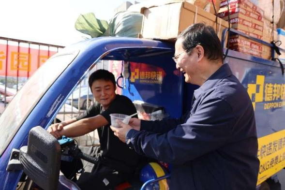為快遞小哥送上湯圓。上城區委宣傳部供圖