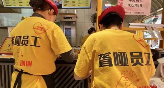 餐飲店店主蔣春艷沒想到,2020年她在上海金山萬達海匯街開出的一家餐廳會迎來一個又一個聾啞人。當聾啞員工人數達到了店員總數的四分之三時,她給餐廳起了個一目了然的新名字——無聲餐廳。