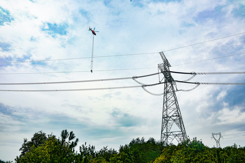 國網衢州供電公司開展特高壓線路大跨越檔直升機帶電作業