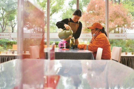 12月9日,在寒冷的冬雨中工作的環衛工人楊巧蓮,走進嘉興市區望湖路驛站,吹著暖空調,在舒適的環境中休息。近日,望湖路驛站等4座“禾城驛·溫暖嘉”驛站榮獲2022年“最美工會戶外勞動者服務站點”稱號?!昂坛求A·溫暖嘉”成為傳遞工會溫度,解決戶外勞動者休息難、飲水難、如廁難等的樣板工程。(王振宇)