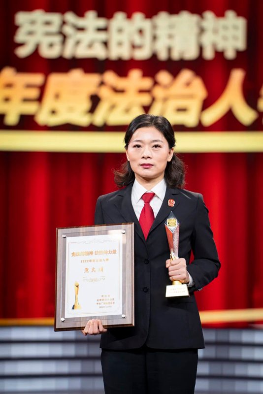 12月10日,由司法部、全國普法辦公室等主辦的“憲法的精神 法治的力量——2022年度法治人物”頒獎禮舉行。根據年度法治人物推選委員會的推選結果,浙江省寧波市鄞州區人民法院邱隘人民法庭副庭長黃文娟當選為“2022年度法治人物”。