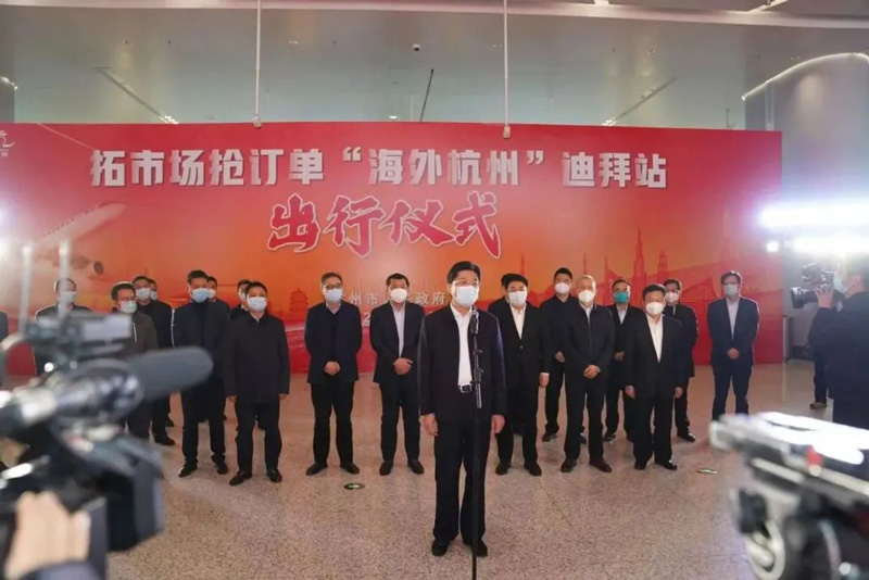 為持續助力外貿企業開拓市場,12月15日,杭州市人民政府組織126家企業赴迪拜,參加“海外杭州”系列展會的迪拜展。杭州市委副書記、代市長姚高員到機場送行并作動員講話。