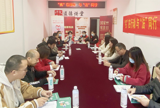 溫州市煙草專賣局以憲法宣傳周為契機,動員“兩公”律師、法規員等組成溫州煙草普法志愿隊,在結對幫扶村溫州市平陽縣下河村開展法治宣傳進農村活動,為群眾宣傳憲法、民法典、煙草專賣法律法規等知識,并通過法條分析、案例解析、現場問答等方式解答群眾提出的關于煙草專賣、鄰里糾紛、婚姻家庭糾紛等方面的問題。