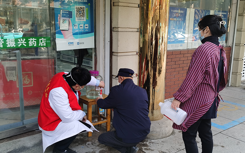 近日,該鎮鐘管村第一網格小分隊在進行日常走訪時,多位村民反映家中缺少退熱藥、消毒液等防疫物資。針對村民們的需求,經隊員與藥店商家協商后,決定每日定時在兩家藥店免費贈送氯酸消毒液,目前已服務500余人。