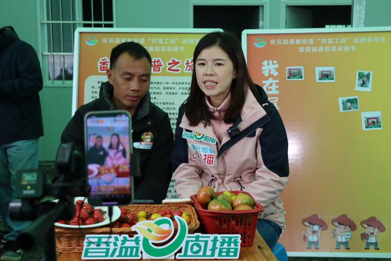 “歡迎大家來到慶元縣屏都街道‘共富工坊’品牌‘菇城番茄哥’采摘節專場直播,我是‘元小播’助農直播團隊小媛……”近日,麗水慶元縣煙草專賣局“香溢”助農“元小播”直播團隊受邀參與慶元縣屏都街道鄉政府舉辦的“共富工坊”品牌發布會暨“菇城番茄哥”采摘節,助力開展直播帶貨活動。