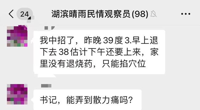 湖濱晴雨民情觀察員群截圖。湖濱街道供圖