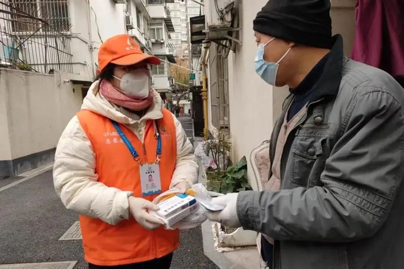 “我們家里沒備藥,剛發燒的時候還很擔心要到醫院排隊排很久,我們年紀大了身體也吃不消。沒想到現在在家門口就能領到免費的退燒藥?!眲倓傤I到藥的王阿姨舒展開了緊皺的眉頭。