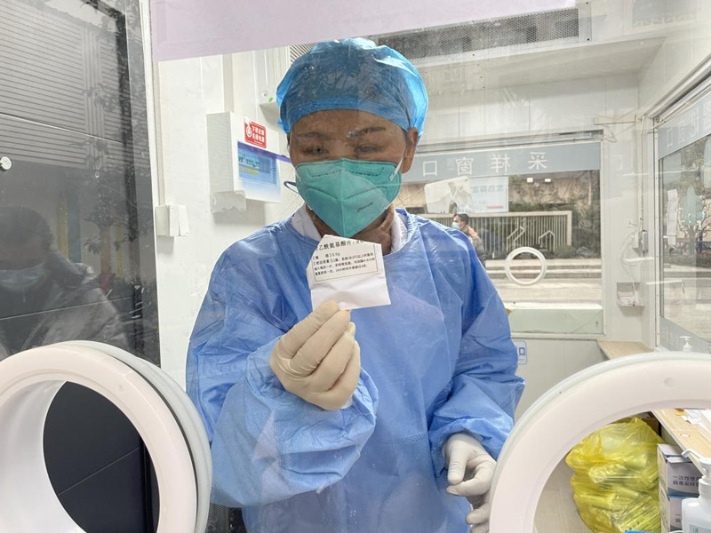 “39度,這是退燒藥,一定要按照上面的說明服藥?!苯?,湖濱街道東平巷社區的核酸采樣點“變身”成了發熱篩查室,醫務人員為一位居民仔細測量了體溫,確認是高燒后,便免費給他發放了一份退燒藥。