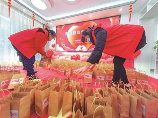 2022年12月31日下午,嘉興秀洲區高照街道各村社組織人員將“防疫包”陸續發放到轄區內60歲以上老人手中,為他們送上新年祝福和關心關愛?!胺酪甙迸溆薪鉄徭偼搭愅藷?、清熱解毒類中成藥、醫用外科口罩、消毒液等,另附一份防疫健康溫馨提示,指導老年人加強防護、科學防疫、合理用藥。(馮玉坤)